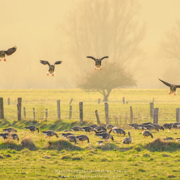 Das Naturschutzgebiet Bislicher Insel ist in den Wintermonaten Rastplatz für die Wildgänse. Blässgänse, Nonnengänse und Saatgänse nutzen die naturnahen Auenflächen am Rhein als Schlafplatz. Durch die milden Temperaturen finden die Tiere auf dem Feuchtgrünland des linksrheinischen Niederungsgebiets ideale Bedingungen für Ihre Winterrast und stärken sich für Ihren Weiterflug. Besonders zur Dämmerung und zum Sonnenuntergang ist der Einflug der Gänse auf die umliegenden Wiesen ein echtes Naturschauspiel. Die Wildgänse sind daher auch das Hauptmotiv der Workshops im Winterhalbjahr.