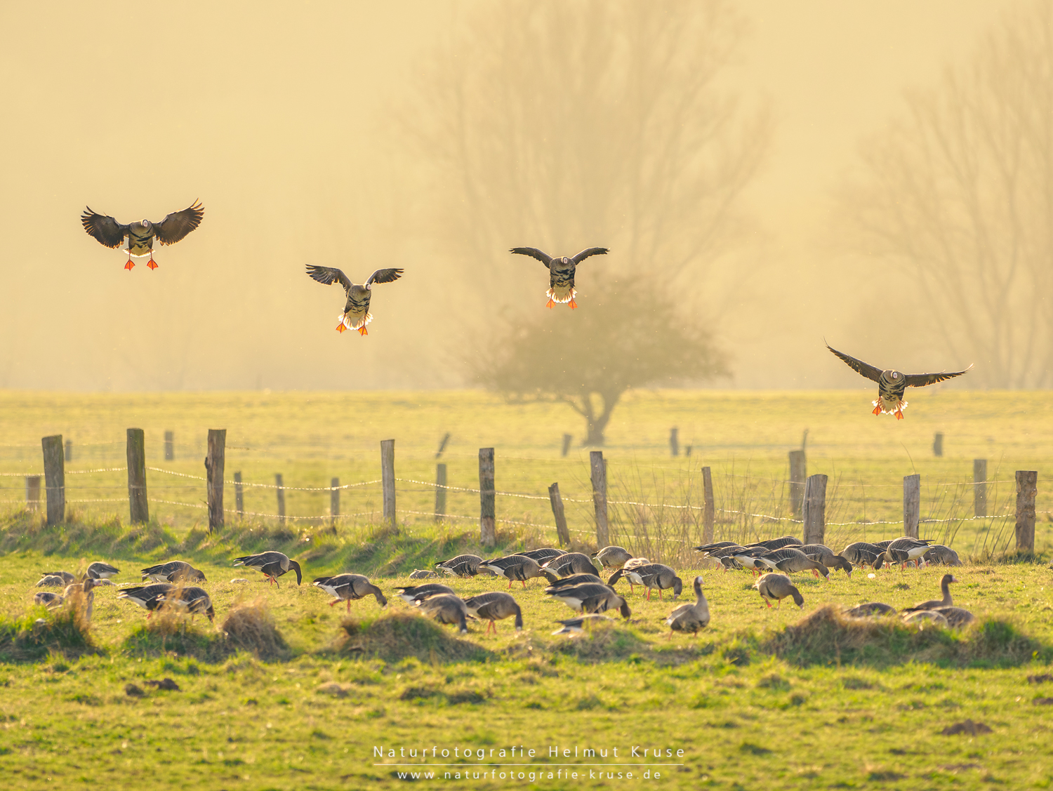 Das Naturschutzgebiet Bislicher Insel ist in den Wintermonaten Rastplatz für die Wildgänse. Blässgänse, Nonnengänse und Saatgänse nutzen die naturnahen Auenflächen am Rhein als Schlafplatz. Durch die milden Temperaturen finden die Tiere auf dem Feuchtgrünland des linksrheinischen Niederungsgebiets ideale Bedingungen für Ihre Winterrast und stärken sich für Ihren Weiterflug. Besonders zur Dämmerung und zum Sonnenuntergang ist der Einflug der Gänse auf die umliegenden Wiesen ein echtes Naturschauspiel. Die Wildgänse sind daher auch das Hauptmotiv der Workshops im Winterhalbjahr.
